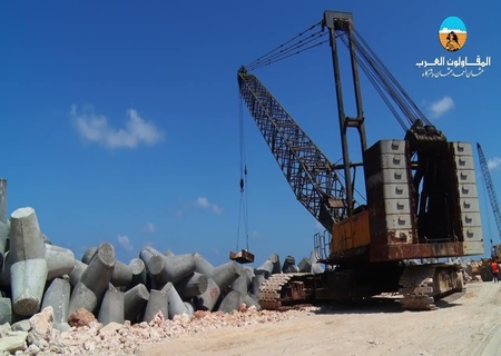 There are two submersible breakwaters in front of the area, from the Automobile Club in Bir Masoud to Al Mahrousa, with a length of 1,600 meters. The first breakwater is 1,100 meters long, and the next is about 500 meters long. They are implemented on a contour of approximately 6.50 meters, with a width of 40.0 meters and a height of 0.50 meters. The protection sector for the submersible breakwaters consists of a bed and core made of graded stones; its foot is made of tetrapod blocks weighing 3 tons and dolomite stones weighing 1-2 tons; and the main protection layer is made of tetrapod blocks weighing 7 and 10 tons. Besides, feeding with sand in the beach area behind submersible breakwaters with a width of about 30.0 meters.