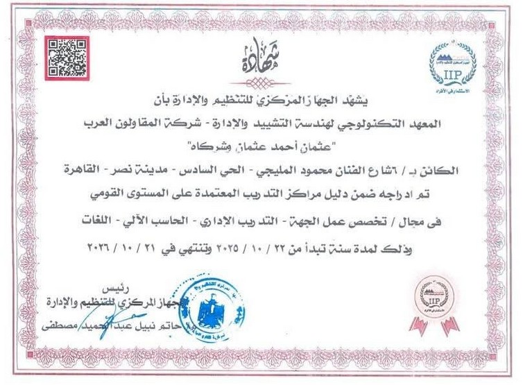 الجهاز المركزي للتنظيم والإدارة يجدد اعتماد المعهد التكنولوجي لهندسة التشييد والإدارة