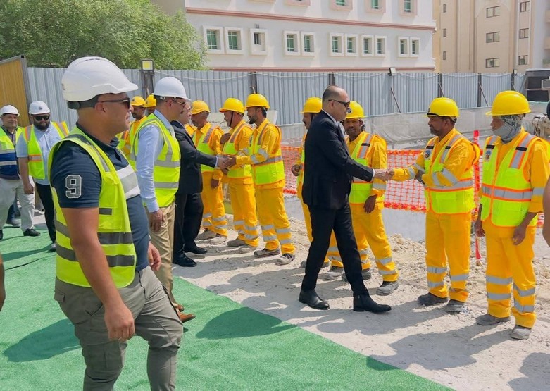 Minister of Labor Mohammed Gibran visited the construction site of a residential complex at Bin Mahmoud area in Doha, being implemented by Qatar Arab Contractors Company. He met with Egyptian engineers, workers, and company leaders, in the presence of Ambassador Walid Al Faqi - Ambassador of the Arab Republic of Egypt to Doha. The visit coincides with Egypt's participation in the 6th Islamic Conference, held in the Qatari capital, Doha, on Wednesday and Thursday. During the visit, the Minister of Labor urged the workers to exert their utmost effort and excel at their work, as they are their country's ambassadors abroad. The Minister emphasized his appreciation for Egyptian workers and engineers. He also praised the significant growth witnessed by the construction sector in Qatar, and the opportunity for Egyptian companies to participate and contribute through a major Egyptian construction company, the Arab Contractors Company. Eng. Ashraf El Desouky - Managing Director of Qatar Arab Contractors Company, conveyed to the Minister and his companions the greetings of Eng. Ahmed El Assar - Chairman of the Arab Contractors Company, stressing that this project is a strong building block in completing the successes achieved by the company in Qatar, the latest of which was the company receiving 2 awards from "MEED" for its most recently completed projects, namely: Mirad Tower project in Dafna area, consisting of 2 basements, a ground floor, and 31 floors, which won the award for the best building for the year 2023 in the Middle East, and the British King's College School in Mesaimeer area, which won the award for the best educational building for the year 2024 in the Middle East and North Africa. It's worth noting that Qatar Arab Contractors Company implemented Water Pipeline Extension Project for Kahramaa in Doha in 2017, Mirad Tower, Dafna area in Doha in 2021, and a food warehouse, office building, and residential buildings in Al Wakra Logistics Zone in 2022. Among its most recent projects is the construction of King's College at Mesaimeer area in Doha.