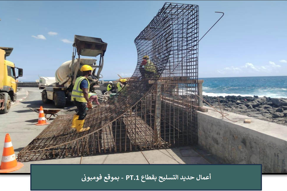 • عمل حائط بحرى رأسى ملاصق للطريق بطول 84 م