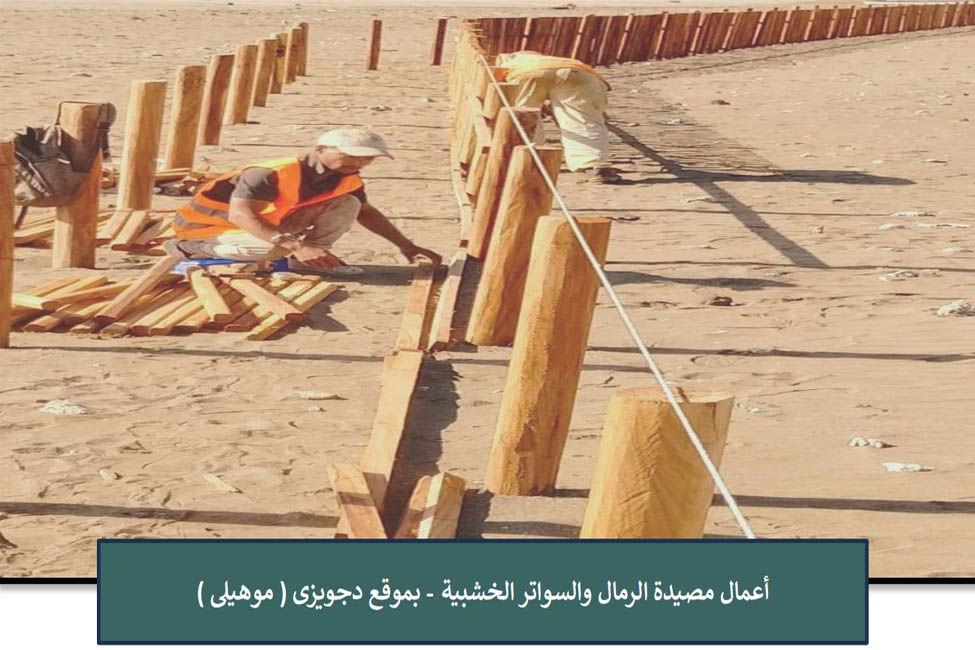 • تركيب خط من الحصى أعلى الشاطئ الأمامي حتى منسوب 6.20م عرض 4 م وطول 255م