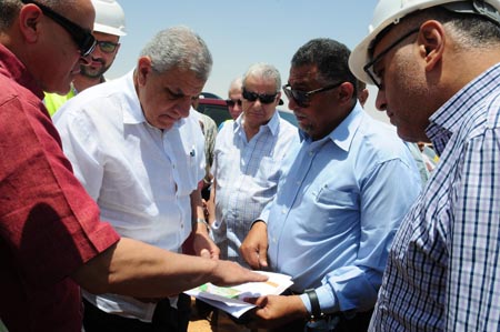 Eng. Ibrahim Mahlab – Presidential Assistant for the National and Strategic Projects was in a surprise visit to the New Capital Project to follow up the work progress and the execution rates in the residential district – 8th neighborhood in 6th District and the utilities and roadways of the 550 feddans which carrying out by national companies. Eng. Mohsen Salah – Chairman of the Arab Contractors stated that the Arab Contractors Company currently working on the utilities for 550 fed. In addition to the roads works which reached 1.3 million m. Concerning the residential district there are 1500 housing units were executing out of 12 000 units for 44 buildings out of 60 buildings with a varied space from 110 m – 180 m (middle – Luxurious). Each building consisting of: a ground floor, a basement and 4 floors. In addition to these, there is ongoing works of the interior roads which reach 6km in the residential district. It is noteworthy that more than 7 branches participated in this project with more than 4000 workers and 150 equipment and the work is going 24 hours/7 days. Then Eng. Ibrahim Mahlab and Eng. Mohsen Salah visited Rod El Farag Corridor which is considered one of the mega projects implemented by the Arab Contractors currently for the Engineering Authority for the Military Forces (Military Engineers Department) under the supervision of the Ministry of Housing, Utilities and Urban Communities and the works is going on according the stated time schedule.