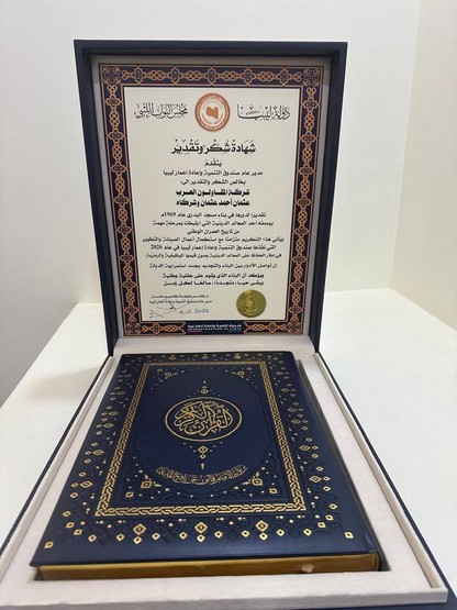 تكريم المقاولون العرب لدورها فى إنشاء مسجد البدري بمدينة بنغازي