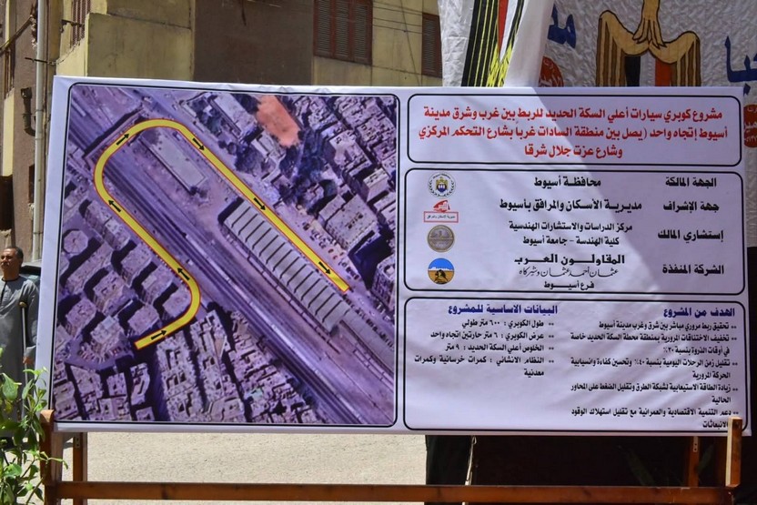 وضع اللواء محمد علوان محافظ أسيوط، حجر الأساس لمشروع إنشاء كوبري سيارات أعلى السكة الحديد، بمنطقة السادات لربط غرب مدينة أسيوط بشرقها، ضمن خطة الدولة لتطوير البنية التحتية وتعزيز جهود التنمية الشاملة وتحسين مستوى الخدمات المقدمة للمواطنين وذلك في إطار احتفالات محافظة أسيوط بعيدها القومي الـ227 والتي تتزامن مع ذكرى انتصار أهالي قرية بني عديات على الحملة الفرنسية عام 1799م. جاء ذلك بحضور المهندس عصام عبد الظاهر وكيل وزارة الإسكان، وممدوح جبر رئيس حي غرب أسيوط، وأبو العيون إبراهيم رئيس حي شرق أسيوط، والمهندس أحمد عبد الفتاح رئيس قطاع ومدير فرع شركة المقاولون العرب بأسيوط، والمهندس مصطفى أحمد عبد الله مدير المشروعات بفرع أسيوط، والدكتور حسن يونس أستاذ هندسة الطرق بكلية الهندسة جامعة أسيوط، إلى جانب أعضاء مجلسي النواب والشيوخ. يهدف المشروع إلى الربط بين منطقة السادات بحي غرب أسيوط وشارع التحكم المركزي وعزت جلال بحي شرق المدينة، بطول 600 متر وعرض 6 أمتار في إتجاه واحد في المرحلة الأولى، ويتم تنفيذه بواسطة شركة المقاولون العرب، بالتعاون مع مركز الدراسات والاستشارات الهندسية بكلية الهندسة جامعة أسيوط ويمثل المشروع خطوة مهمة نحو تحقيق ربط مروري مباشر بين شرق وغرب المدينة، بما يسهم في تخفيف حدة التكدسات المرورية، خاصة بمحيط محطة السكة الحديد، لاسيما خلال أوقات الذروة، فضلًا عن تقليل زمن الرحلات اليومية، وتحسين كفاءة وانسيابية الحركة المرورية، وزيادة الطاقة الاستيعابية لشبكة الطرق، وتقليل الضغط على المحاور الحالية. ويدعم المشروع أيضًا جهود التنمية الاقتصادية والعمرانية، ويسهم في خفض استهلاك الوقود وتقليل الانبعاثات، موجهًا بضرورة تسريع وتيرة التنفيذ، والالتزام الكامل بالمواصفات الفنية والمعايير القياسية، وفقًا للجداول الزمنية المحددة، بما يضمن تحقيق الاستفادة القصوى من المشروع.