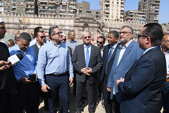 Minister of Antiquities Khaled Al-Anany visited Al-Zaher Baybars Mosque in Cairo to continue its restoration and rehabilitation works which has been suspended for several years. Dr. Al-Anani praised the national role of the Arab Contractors Company on reserving this important monument since 2011 till now. He thanked Eng. Mohsen Salah – Chairman & CEO of the Arab Contractors Company for the role of his company. The minister declared to the mass media that the restoration work of the Al-Zaher Baybars mosque is a huge project because the bad construction condition and the presence of underground water due to the low level of the mosque about 3 meters. He stated that the construction of a new mosque is easier than the restoration of the mosque for its current bad condition which requires highly technical staff exiting in the Arab Contractors Company working to execute the project with the highest accuracy and technicality. He pointed out that the renovation work will be completed within 18 months and its cost will exceed 100 million EGP. He stated that there is a huge dome is designed for the mosque. The minaret will be reinstalled for the mosque to come to its original form. Kazakhstan Ambassador to Cairo expressed his happiness that the AC will carry out this project as one of the mega contracting companies in the region and has a great experience in this filed. Eng. Mohsen Salah said that the AC is keen to achieve the original shape and architectural style of the mosque, and it is important for us to preserve the historic character of the mosque and achieve its original form. The Minister was accompanied by Mr. Mohammed Abou Hamed - the Parliamentarian Member, Dr. Moustafa Wazeery – the General Secretariat of the Supreme Council for Antiquities, General Hisham Samir Ibrahim - Assistant Minister of Antiquities for Engineering Affairs, Mr. Mohammed Abdel Aziz – General Manager of the Historical Cairo Project, Eng. Emam Afify – AC Vice Chairman, Eng. Tarek Khedr – Head of Construction and Specialized Works Sector and Manager of Monument Restoration Department and Eng. Mahmoud Abdel Fattah – the Deputy Manager of Monument Restoration Department. It is a noteworthy that Al-Zaher Baybars was a military leader and one of the prominent Mamluk sultans and he is the most significant one of them. His era witnessed a huge architectural and educational renaissance in addition to his military victories. He started the establishment of his mosque on 13th March 1267 and its was inaugurated on June 1269. The mosque in built on a huge area reached about 22000 m2. It was planned according to the style of the traditional mosques on resemblance of the Prophet's Mosque (Al Masjid Al Nabawi). The mosque is consisting of a middle open courtyard surrounded by aisles on all four sides; the biggest one is Al Qebla Porch. The heights of the facades reached 11m interspersed with prominent pillars for wall strengthen. The mosque has 3 monumental entrances, the largest of which is on the northwestern wall above of it the remains of the minaret which was exist till the coming of the French Campaign to Egypt. The other entrances are side ones on the southwestern and northeastern facades.