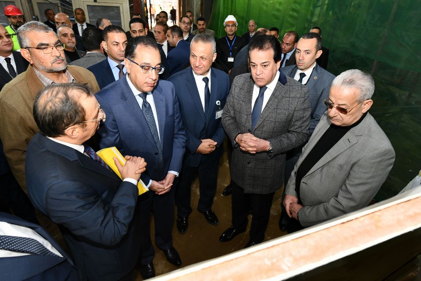 Dr. Moustafa Madbouli – the Prime Minister inspected the rehabilitation and development works of the National Cancer Institute of Cairo University. He was accompanied by Dr. Khaled Abdel Ghaffar - Minister of Higher Education and Scientific Research, Dr. Mohamed Othman Elkhosht - President of Cairo University, Dr. Hatem Abul Qassem - Dean of the National Cancer Institute, Eng. Mohsen Salah - Chairman of the Arab Contractors Company, Eng. Emam Afify - Vice Chairman of the AC and Eng. Tarek Khader - Head of Construction and Specialized Works Sector. The Prime Minister’s tour includes huge part of the important medical building that subject to the rehabilitation project after being damaged by the terrorist incident occurred last year. He listened to an explanation about the project which started immediately after the accident and scheduled to end in June 2020 with a cost reached 100.000.000 EGP. This is to re-increase the efficiency of the headquarters which consists of number of buildings: the patients building comprising 7 floors includes the followings: operating theaters, intensive care, pediatric department, patients rooms, doctors' housing, nursing staff, administrative building and other for lectures halls, a building for pediatric clinics, early detection, pain treatment and pharmacies. The Minister of Higher Education explored the implementation phases of the project which is divided into 2 phases: the first related to the damages repair and the second phase concerning the development and upgrading works. A detailed explanation was provided about ongoing works in light of the time schedule submitted by the Arab Contractors Company for development project for the buildings of the National Cancer Institute; besides, the clarification of the actual implementation rates of the project at all its stages. He pointed out that the first phase witnesses the repairing works of the internal damages of the medical building, internal and external facades, repairing works of the damaged floors within the lectures hall building; besides the rehabilitation works of the emergency area and the main entrance. The second phase includes the removal of all the random installations in the northern and southern courtyards, the construction of a lounge for the patients and their families, the construction of alternative movement paths, clinics for early detection, pain treatment, a lounge for doctors and pharmacies. Besides, the upgrading works of the administrative buildings and the lecture hall, as well as the development of electromechanical works for the administrative building, a parking, early detection area and pain treatment. Dr. Khaled Abdel Ghaffar discussed the developments in the emergency area and the exterior yard which included the expansion of the emergency area and increasing the capacity for 18 beds instead of 12. In addition to the separation of the emergency service through the main entrance and constructing a new entrance with a ramp and a stair for the special needs people. Besides, connecting the emergency area with the inner yard, the northern building and clinics. The emergency area was developed to maximize its benefit by organizing and providing waiting areas for patients and their families with a capacity of 80 persons; organizing the movement paths, overall maintenance for the maintenance area of the civil and electromechanical works. The Prime Minister inspected the southern building of the National Cancer Institute which its construction works is ongoing; he listened to an explanation about the building. The initial cost of the building is 320 million EGP, Sheikh Sultan El Qassimy - El Sharjah Governor bearing 160 million EGP, the other 160 million EGP is a governmental financing. The building is consisting of 6 floors which include 262 beds divided into 105 beds for chemical treatment, 128 beds for patients, 6 operation theaters, 18 care rooms and 5 residence beds. Besides, a bridge connection in the building linking the clinics and the building, an integrated network of gases, a new power plant and the construction process has taken into consideration the strengthen of the columns to resist earthquakes. The Prime Minister gave his direction to intensify the work for speed completion of the building because it is the outlet for receiving patients and relieve pressure on the northern building. Regarding the developments of the main entrance area, the Dean of the National Cancer Institute explained that the rehabilitation works include the increase in the number of doors to 3, specifying the entry paths to coordinate the entry and exit process safely. In addition to electronic gates, metal detector with radiation and the creation of 2 internal security offices for the Institute and the police at the entrance to tight control of the institute’s entrance. Besides, increasing the building’s efficiency in the entrance area through structural reinforcement, building of a ticket room to deal with the public and reducing the numerical density of the entrance by removing the internal ramp and moving it to the interior parking in addition to a complete development for the civil and electromechanical works. Regarding the works of the northern building; there is a complete maintenance for 7 floors including civil work and increasing the efficiency of the electromechanical works. The external facades: the cutting and removal of the accident’s debris with a total amount 1000m2, the restoration of all the external facades, supplying, installation and finishing works were carried out for 3400m2. The development of the exterior park: the construction of a ramp for the patients and their families to maximize the medical care; an elevator in the courtyard to facilitate the movement for the patients and doctors and decrease the pressure on the existing elevators. The introduction of a digital system to organize patients’ entries and having the maximum benefit from the medical care, e