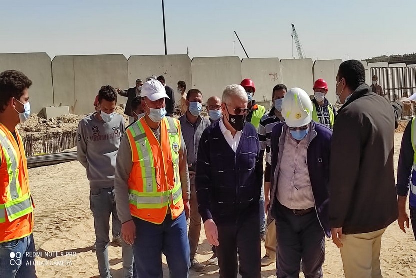 Eng. Sayed Farouk – CEO & Chairman of the Arab Contractors Company inspected number of the national projects which is carried out by the company. He started the inspection tour with El Salam Bridge in 10thof Ramadan Bus Station. It is a parallel bridge to El Salam Tunnel and launched within the Transport Ministry’s plan to expand a ring road around Cairo. It is1355m length and 30m width. He was accompanied by Eng. Hassan Moustafa – Head of Bridges and Foundation Sector. Eng. Sayed inspected Adly Mansour Station which is among the company’s works in LRT project. It is the first station of the LRT which extends to the New Administrative Capital. He reviewed the implementation rates. On the other hand, Eng. Sayed Farouk visited the project of the development of el Wahat Main Road in 6 October city. He witnessed the tunneling works with 800m length. It serves the comer from El Wahat Road ahead to the Ring Road. The project includes the implementation of 800m bridge serving the comer from the Ring Road ahead to El Wahat/El Fayoum Road with a cost of L.E. 800 million. It is considered part of the development project of the main axes in 6 October City. He was accompanied Eng. Ihab Gamal –Project Management Director and Eng. Hany Zaki – Deputy Manager of Bridges Department. Finally, the Chairman inspected Monorail Project – 6 October City Line which serves the huge expansions in the city and expands till Giza with 43km length. It is considered a modern mass transit for the first time in Egypt. The monorail is a railway in which the track consists of a single rail on straddle concrete beam. It achieves a journey time equal to the time of the car's journey without stopping. The project includes 12 stations: New October -Industrial Area – El Saddat – 6th of October City Authority – Engineers Association– Nile University – Hyper One – Cairo/Alexandria Desert Road - Mansoureya –Maryotea - Ring Road – Wadi El Nile; in addition to the Depot location near the Industrial Area of 80 feddans approximately. He was accompanied by Eng. Hassan Moustafa –Head of Bridges and Foundation Sector and Eng. Mohamed Ramadan - Project Management Director.