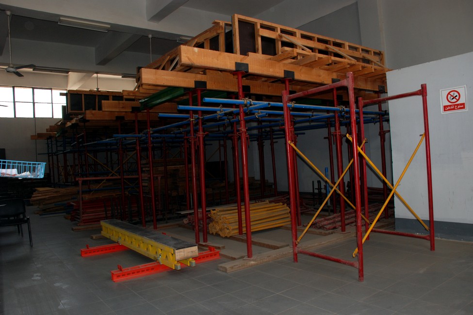 يحتوي المركز علي عدد (8) ورش تدريبية تتيح للمتدرب التعرف نظريا وعمليا علي أعمال الخرسانة والتشطيبات في مجال الانشاءات ،كل ورشة مجهزة بالعدد والأدوات والخامات اللازمة لتنفيذ العملية التدريبية (نظريا – عمليا) ، كما يحتوي المركز علي عدد من النماذج سابقة التجهيز و يمنح المركز اقصي اهتمام لاتخاذ احتياطات السلامة والصحة المهنية اللازمة لجميع الورش.