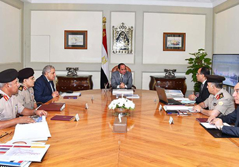 الرئيس خلال إجتماعه بمحلب ووزير الإسكان وقيادات الهيئة الهندسية المرحلة الأولي من العاصمة الإدارية ...
