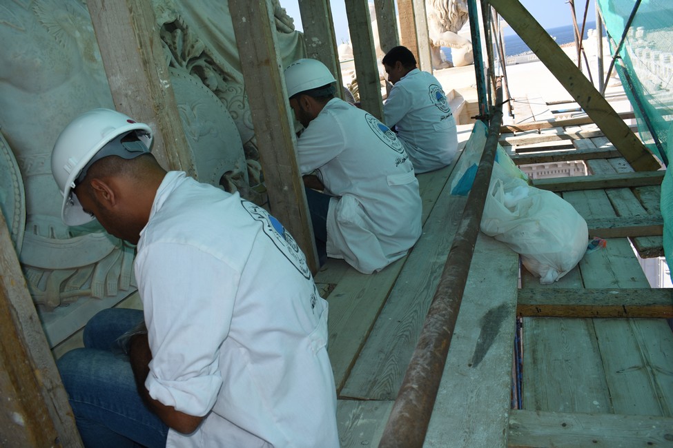 يعد واحداً من أقدم القصور الموجودة في مصر وأحد المعالم التاريخية والأثرية بمدينة الأسكندرية وأول قصر شيده محمد على بمنطقة ساحلية اشتهرت بزراعة أشجار التين فسمي بسراي رأس التين ليكون مقراً لحكمه. شهد القصر بزوغ وتوهُّج نجم أسرة محمد علي التي استمرت نحو مائة وخمسين عامًا كما شهد وفاة محمد علي باشا عام 1848، ورحيل الخديوي إسماعيل عن مصر عام 1879، ورحيل الملك فاروق على متن اليخت الملكي «المحروسة» متوجّهًا إلى إيطاليا بعد تنازله عن العرش لولي عهده الأمير أحمد فؤاد. وبتكليف من رئاسة الجمهورية قامت شركة المقاولون العرب ممثلة بإدارة صيانة القصور والأثار بعمل الدراسات التحضيرية والتسجيل التفصيلي والتوثيق الفوتوغرافي والمعماري والرفع المساحي للكشف عن العناصر المطموسة بالواجهات الرئيسية، وتمت مقارنة الطرز المعمارية للمساعدة في إعادة كل طراز لأصله. ويحيط بعتبة البوابة الشرقية أسدان تتوسطهما كتل رخامية تحوي طيوراً ودروعاً ونسرين متقابلين يحيطان باسم «محمد على»، وهو ما يشير إلى الجزء المتبقي من القصر القديم الذي بناه محمد على باشا وتم دمجه في بناء القصر الجديد بمراحله التاريخية المتوالية، وتتكون البوابة من 6 أعمدة جرانيتية تحمل عتبًا به سبع دوائر كُتِبَ بداخلها آيات قرآنية بحروف نحاسية. وقام رجال الشركة بأعمال التدعيم، الإنشائي والتي تضمنت تدعيم الجدران، وأسقف المدخل، وكذلك العناصر الإنشائية الحاملة للتشكيلات الرخامية المكونة للنص التأسيسي للقصر، وما تحتويه من عناصر زخرفية يتناغم فيها التنوع في الأسلوب في استخدام الخامات، بين الرخام والنحاس والنحاس المذهب. وقد شملت هذه المرحلة فك جزء كبير من التشكيلات الرخامية الأثرية، لتخفيف الأحمال والوصول لمراحل العلاج الإنشائي المناسب للجدران والعقود الحاملة، وإزالة الأسقف الخرسانية التالفة بأسلوب ملائم للعلاج والاستبدال ورفع الكفاءة المستقبلية للأجزاء العاملة والداعمة للتشكيل الرخامي. ثم توالى انجاز فريق العمل بأعمال الترميم المعماري لعناصر الواجهات بعد الكشف عن أصلها، بكامل سمك الجدران لتعطي لوحة فنية يظهر فيها جمال نسيج الرخام، وازالة الكسوة المستحدثة التي تغطي عناصر الواجهات، وإحياء العناصر المعمارية المطموسة واستنباط المفقود منها. كذلك تمت أعمال الترميم التفصيلي لحليات الأبواب الرئيسية والعقود وغيرها، بالإضافة إلى أعمال الترميم الدقيق للعناصر الأثرية الثابتة والمنقولة للواجهات ومدخل القصر، شاملاً فك وترميم ورفع كفاءة المشغولات النحاسية بالكامل بهدف الكشف عن أصالتها وكذلك عزلها لمقاومة الظروف البيئية البحرية المحيطة بالقصر، ثم فك وترميم وإعادة تأهيل وتذهيب العناصر الخشبية المزخرفة بسقف مدخل البوابة الرئيسية. وإعادة تذهيب العناصر النحاسية والنص التأسيسي وتاريخ الإنشاء، وأعمال رفع كفاءة أحرف وكلمات الشريط الكتابي النحاسي أعلى المدخل الرئيسي للقصر، ثم تمت أعمال الترميم الدقيق للعناصر الخشبية بالأبواب الرئيسية وهي العنصر الأبرز حيث تم الكشف عن عناصر الواجهة المطموسة وإزالة التعديات عليها ورفع كفاءتها وترميمها واستكمال المفقود لإعادته إلى الشكل والتكوين الأصلي وقت إنشاء القصر.